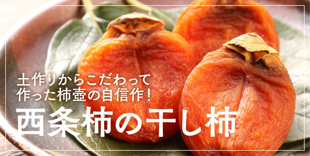 干し柿の最高級原料と言われる「西条柿」の干し柿。柿壺では、干し柿を冷凍保存することによって一年を通じてお楽しみいただけます。